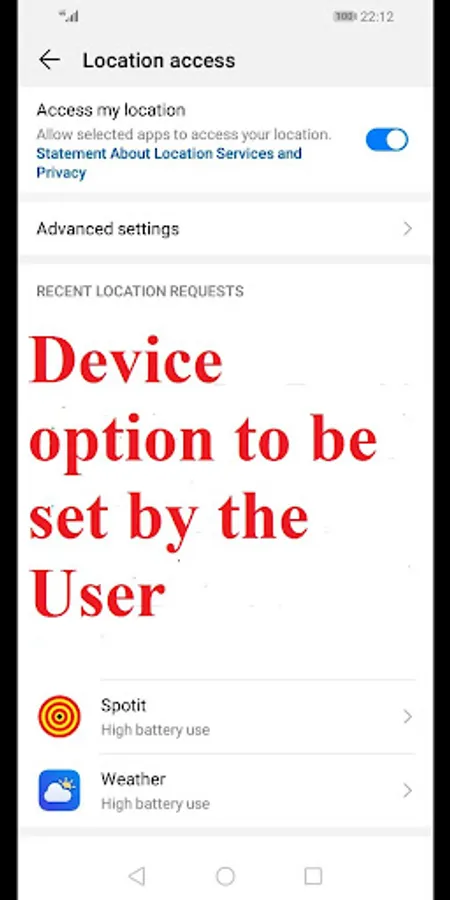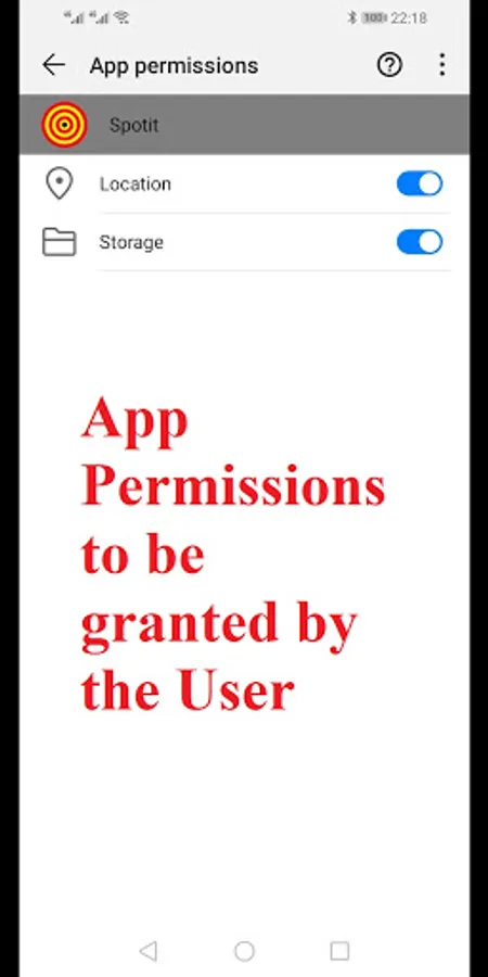 In order to get the best from this app, it requires that all the relevant permissions (on the "App Permissions" page for the Spotit app under "Settings") be granted by the user, and this should be done immediately upon installation of the app. These relevant permissions are: the Location, SMS and Storage permissions. Additionally, the "Access my location" option (on the "Location access" page accessed from the "Security & privacy" page under "Settings") should be enabled. As the app requires the FULL consent of the user, Spotit is therefore not an app developed for espionage.