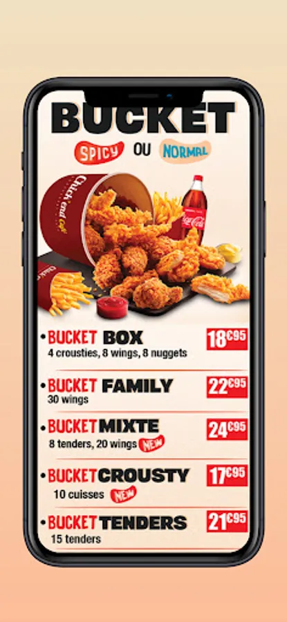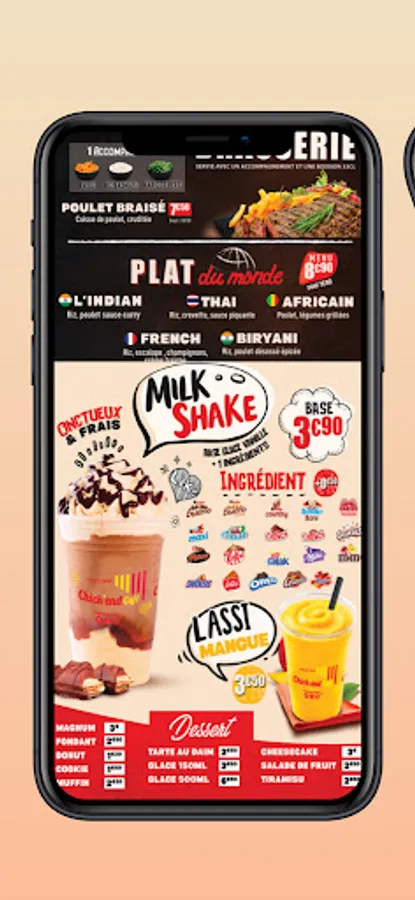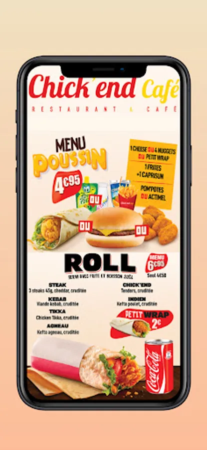 Thanks to the Chick'end Café app, all you have to do is choose your favorite dishes and have them delivered right away. Do you prefer Burgers, Fried Chicken or Pizzas?