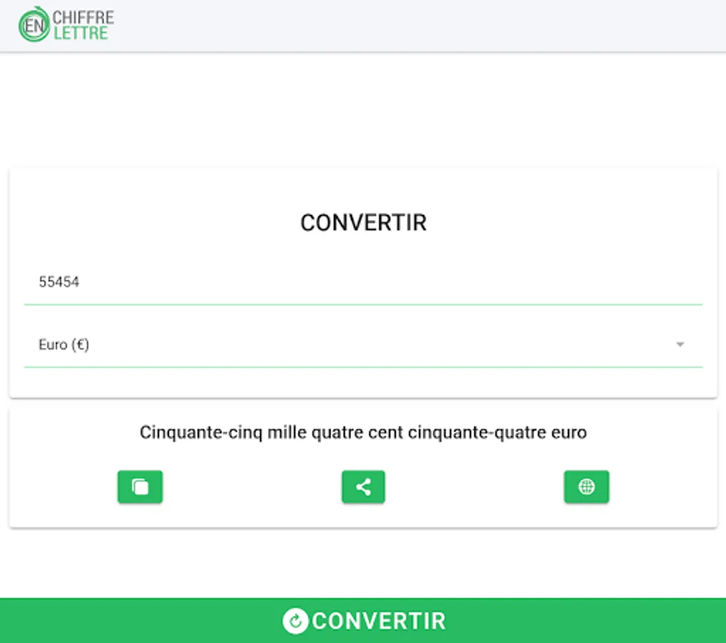 Numbers to Letters Converter is a free application that allows you to convert any number, number or amount to any letter in a simple way and without spelling errors.