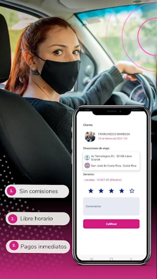 Mobile application created exclusively for female drivers, where they can accept and make trips with their vehicle. It does not make commission charges, flexible work hours, security in each trip that is made.