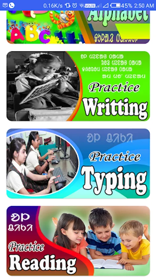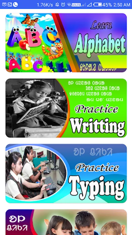 This application is dynamically, so You always stay online and get always new new updated so, I request you please keep your Internet connection always ON when you use this Application. Here I providing you a good method to Learning SANTALI (Writing, Typing, Reading and Pronunciation ) Here many categories in this Application like .