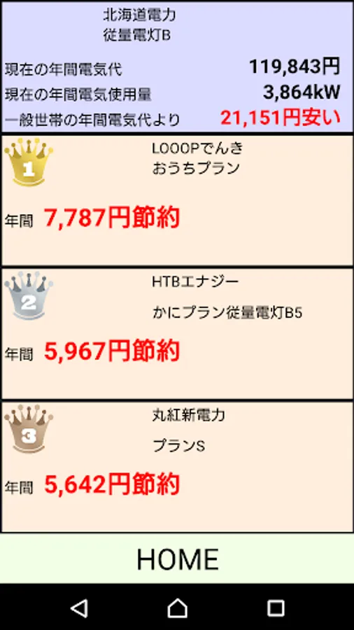 このアプリでは簡単にご家庭の電気料金を算出し、他社とのお得なプランと比較することができます。