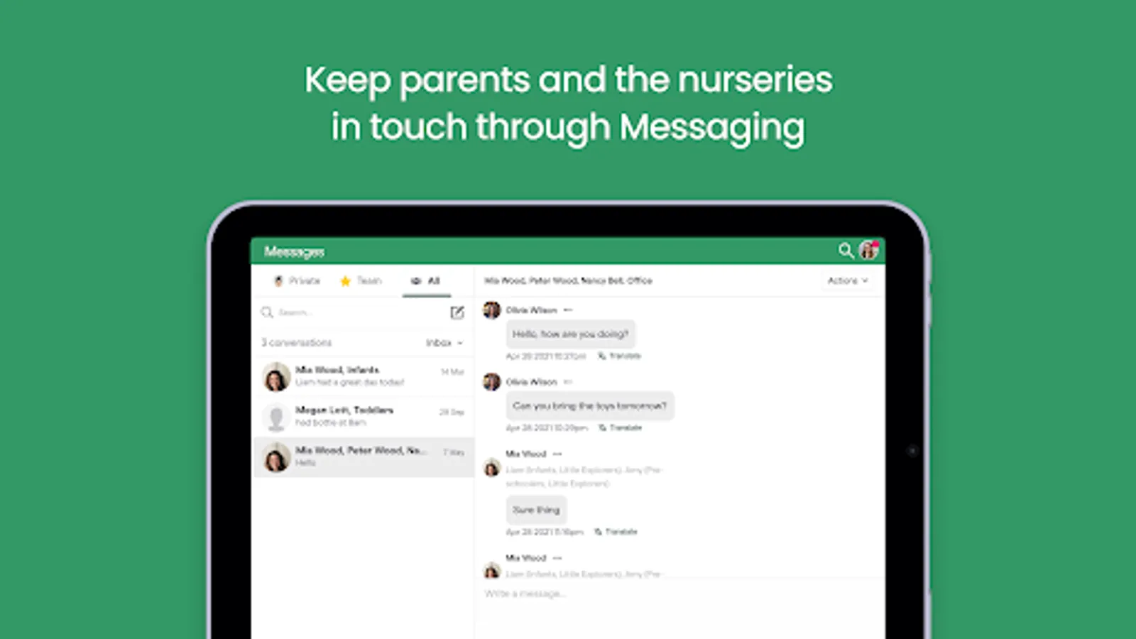 Key features of a parent engagement app for child care may include: