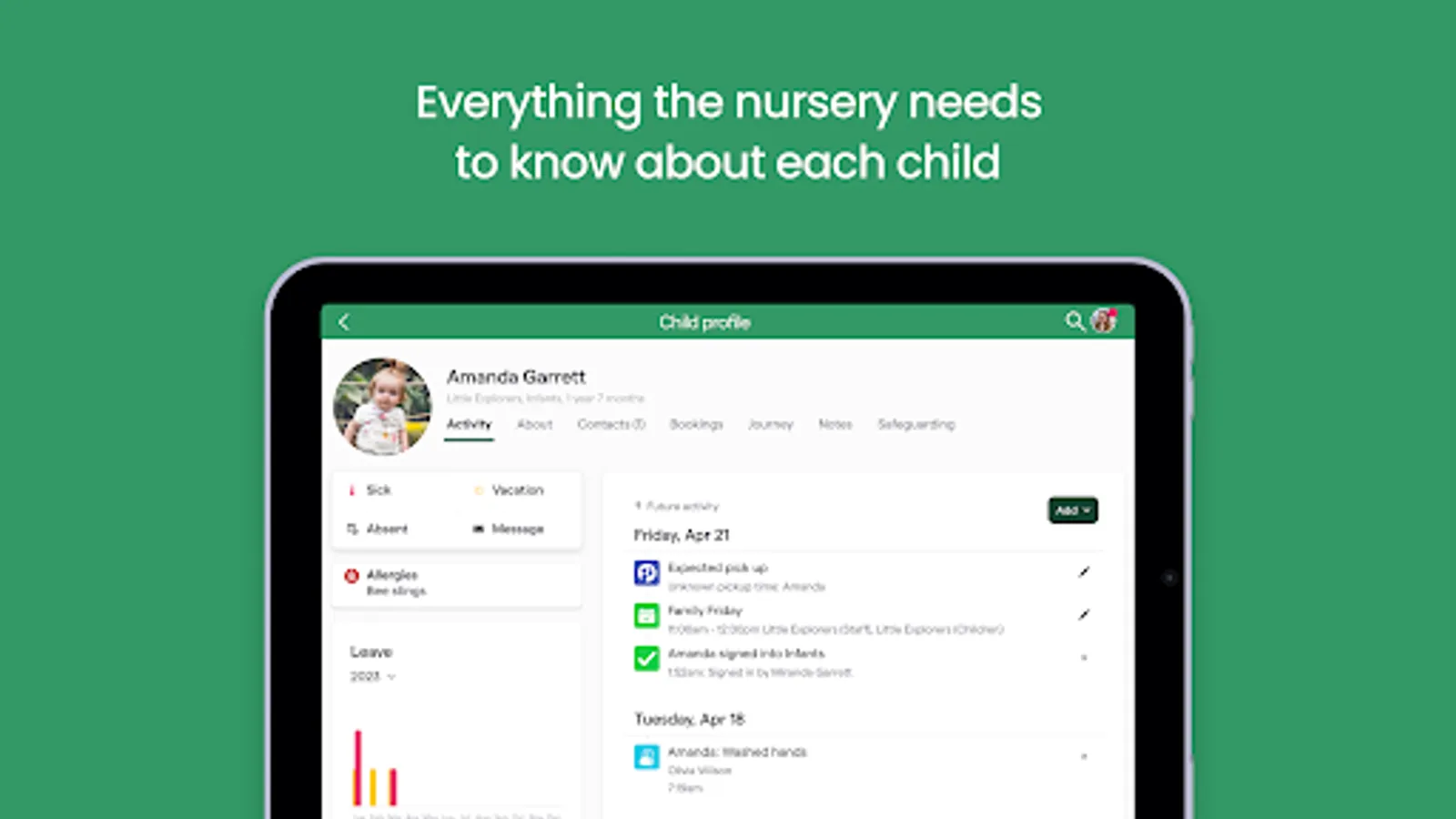 4. Event and Calendar Notifications: Parents receive alerts and notifications about upcoming events, field trips, parent-teacher meetings, and other important dates related to their child's care and education. This helps parents stay informed and plan their involvement accordingly.