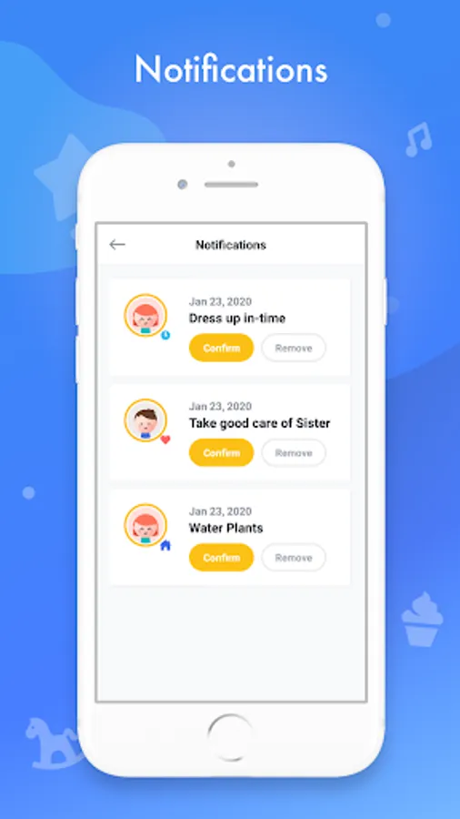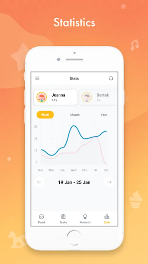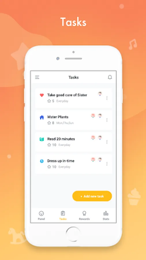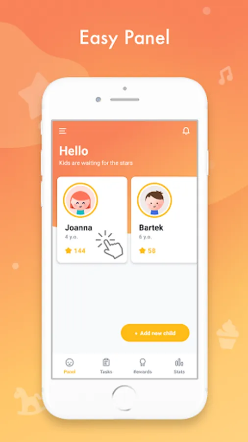 The most important functionality of the application is the ability to creating a panel for a kid. Synchronise both account is simple as scanning the QR code. The panel allows you to complete everyday chores. After completing the task, the parent automatically receives a notification. The parent can confirm or reject child tasks.