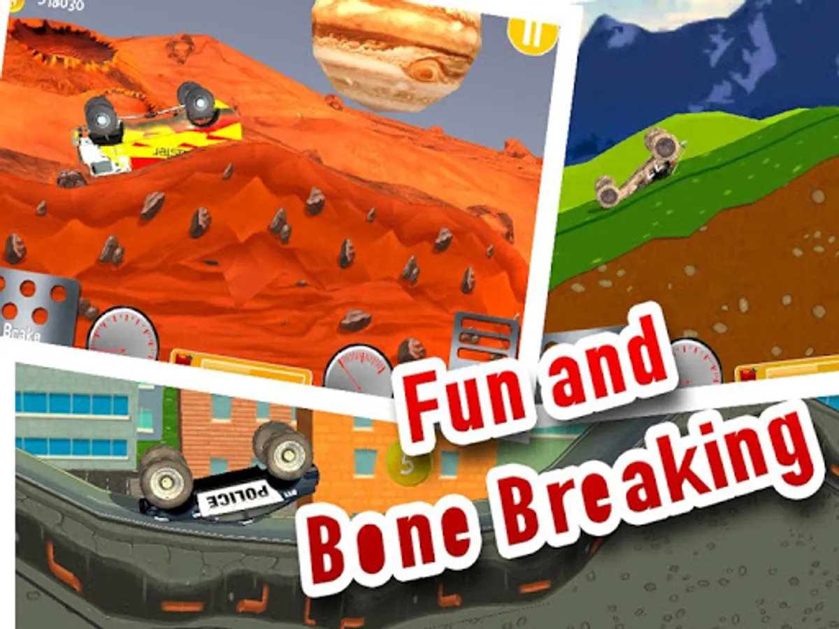 - Dare-devil kind of offroad stunts and funny hill climbing