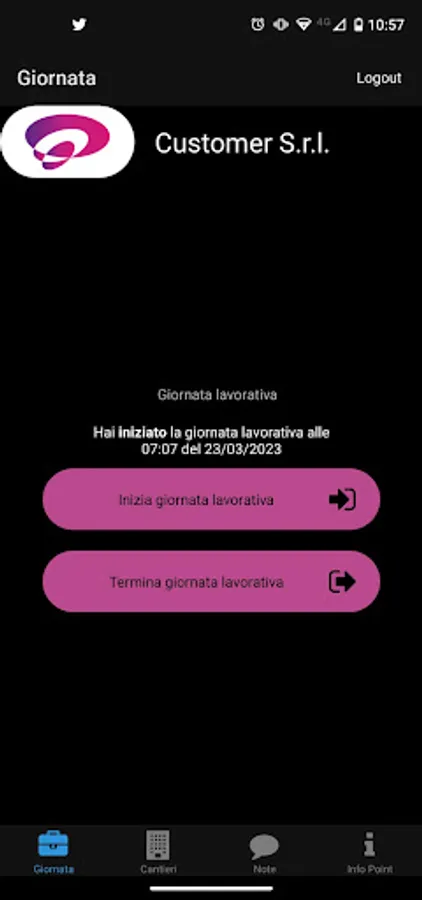 It is possible to leave a construction site when the work is finished and start a new activity on the same day, choosing it from the drop-down menu proposed by the application.