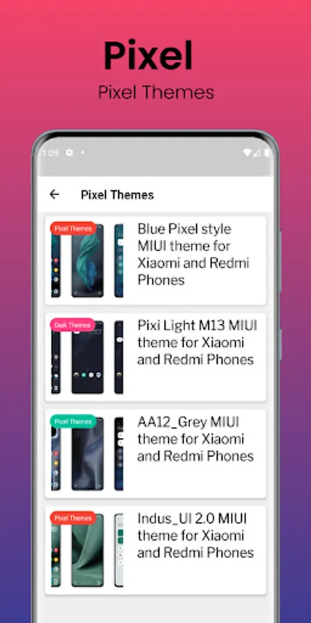 MIUI Themes app is a collection of quality themes for your Xiaomi Mi and Redmi smartphones. Using this free theme collection app, you have unlimited access to a range of different MIUI themes to make your Xiaomi phone look more beautiful and personalized.