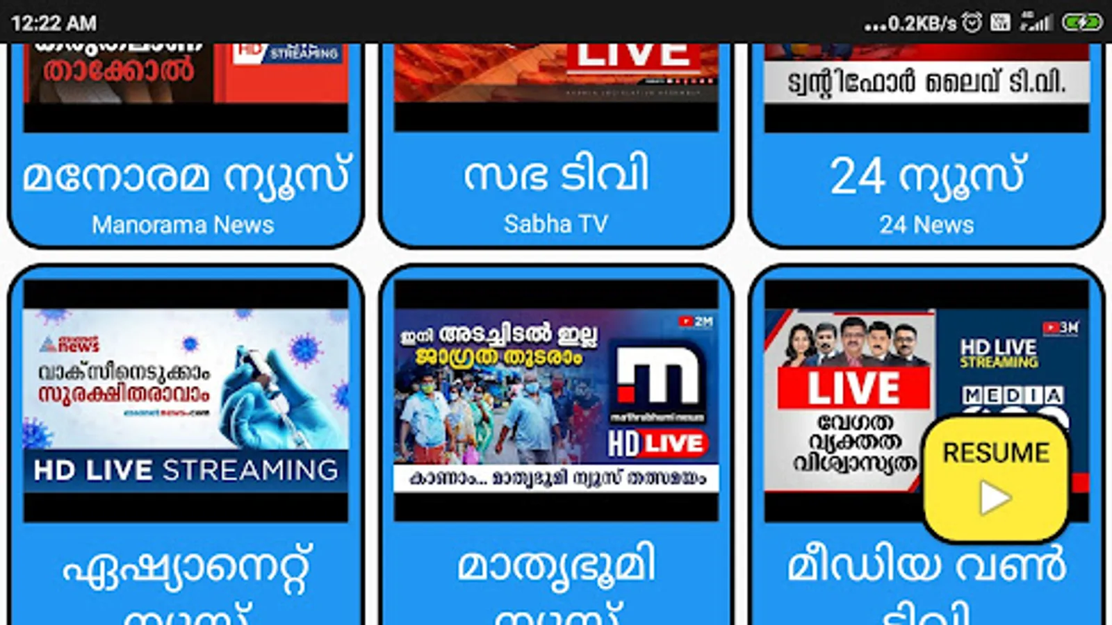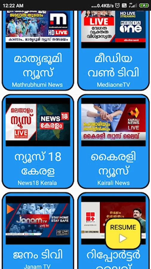 An app that shows top news channel live streams for easy access. Resume to recently played live on a single click. Get to know about what is happening around.