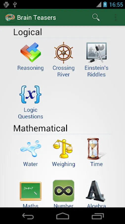 This application is a set of logic, math, geometry, number, matchstick and other types of brain teasers that require logical thinking.