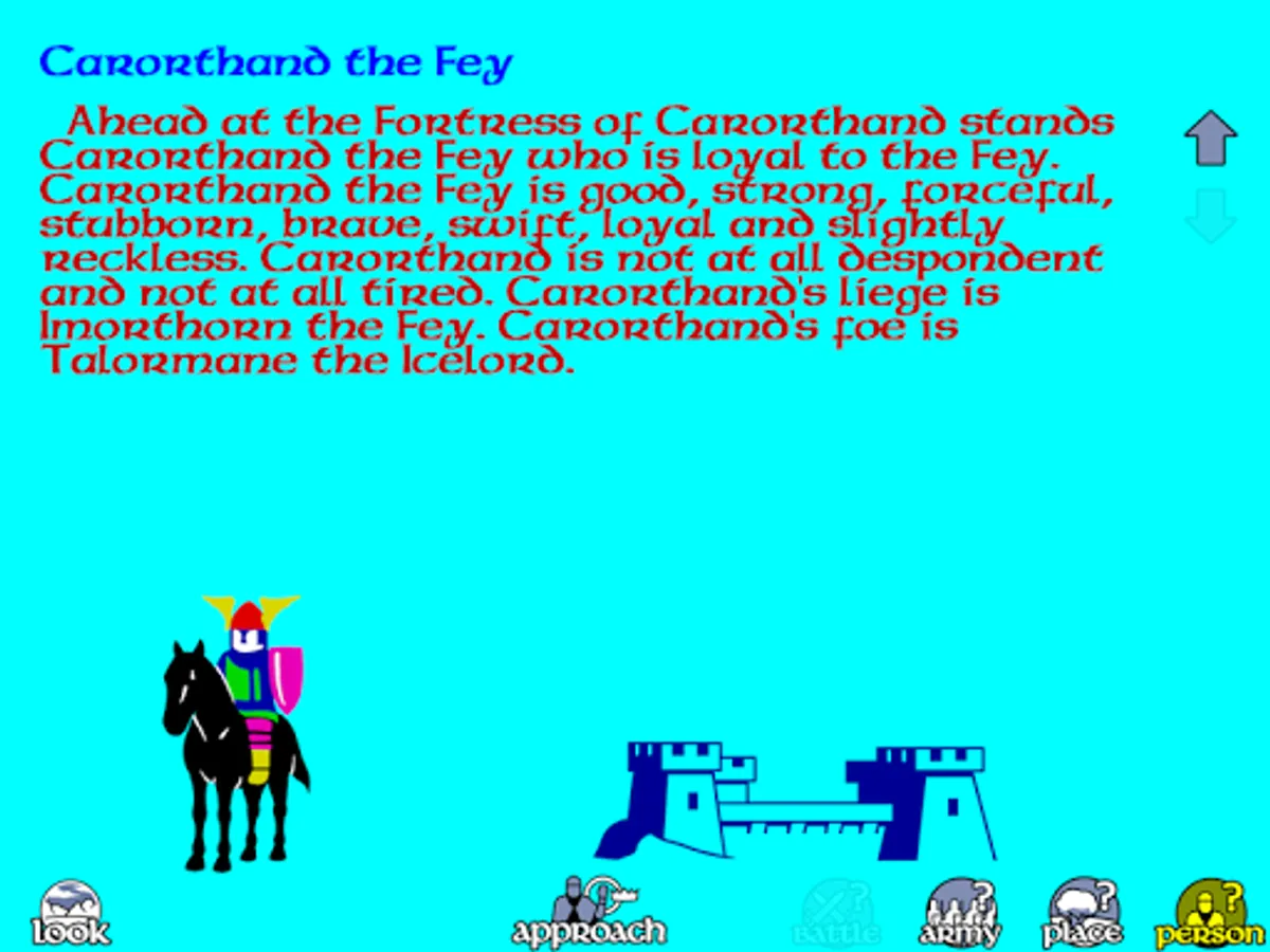 The game itself involves both quest and warfare, both exploration and careful strategy. You can play on your own or with friends; there are enough different characters at your command for all the family to join in and struggle against Shareth Heartstealer, Empress of the frozen Empire!" - Mike Singleton - 1985