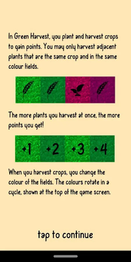 The more plants you harvest at once, the more points you get! Each time you harvest plants, you turn areas of the soil over, creating separate fields.
