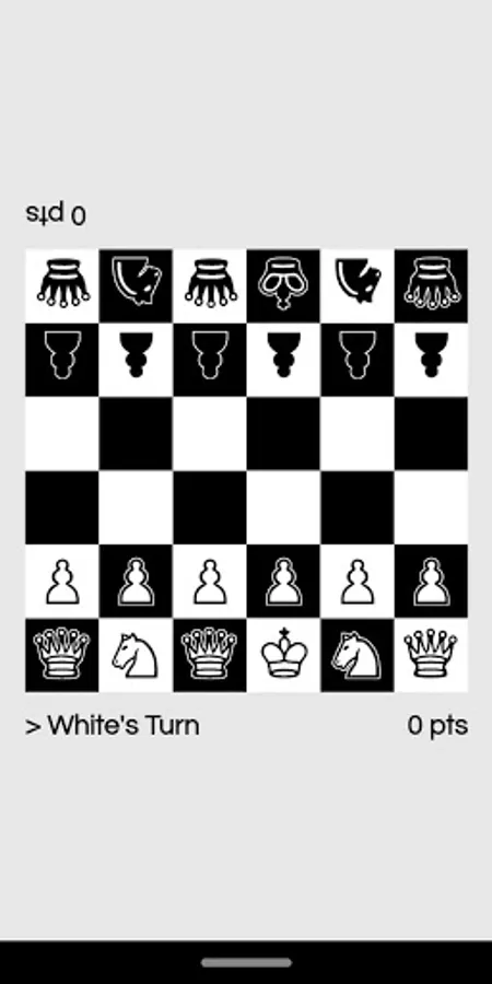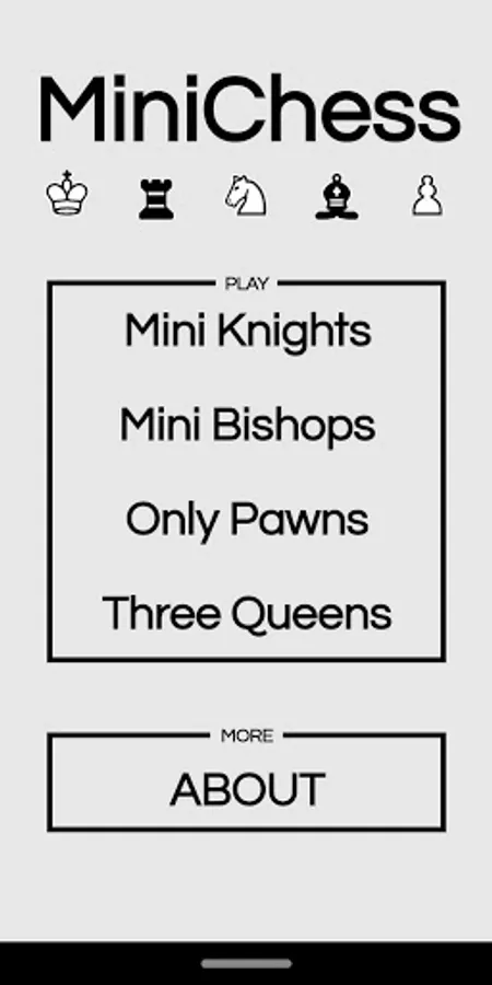 Play Chess on a scaled down 6x6 board - it's the traditional game slimmed down and simplified! There are 4 game modes, each with different starting pieces: Mini Bishops, Mini Knights, All Pawns and Three Queens.