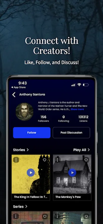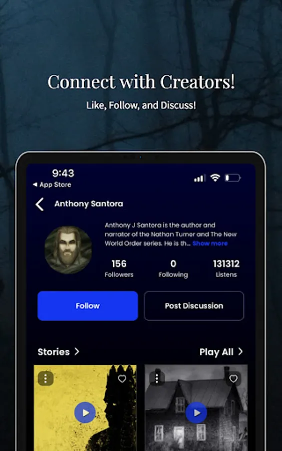 Create playlists of stories from your favorite genres or artists & choose an ambient sound that matches the narrative you desire.