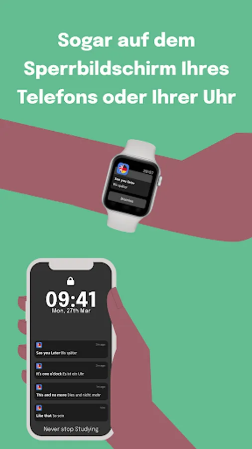 Study without opening the app, even on your watch, with flexibly scheduled notifications