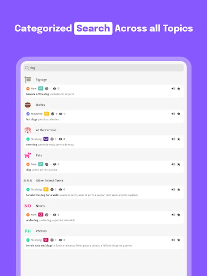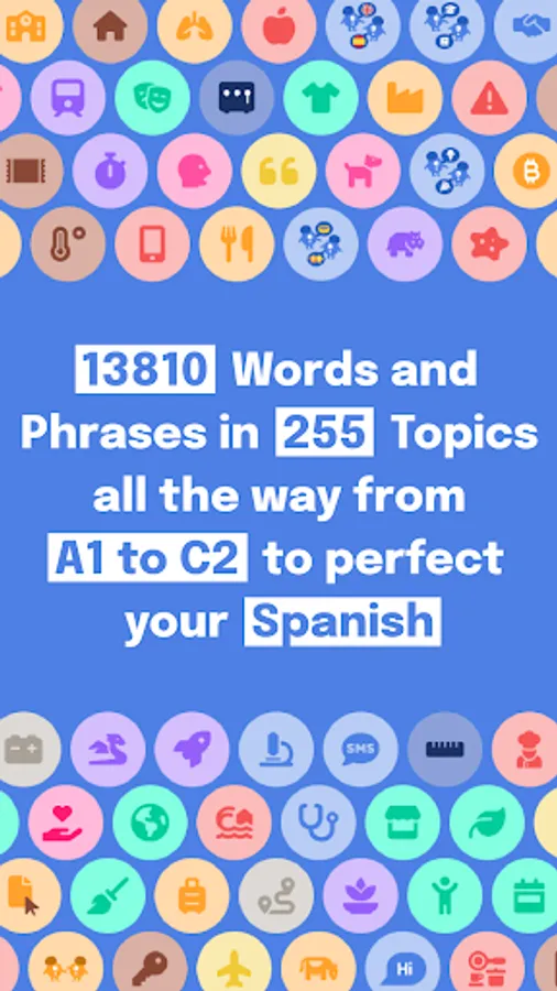 Prepare for Real Life with 13810 Spanish Words and Phrases in 255 Topics from A1 to C2