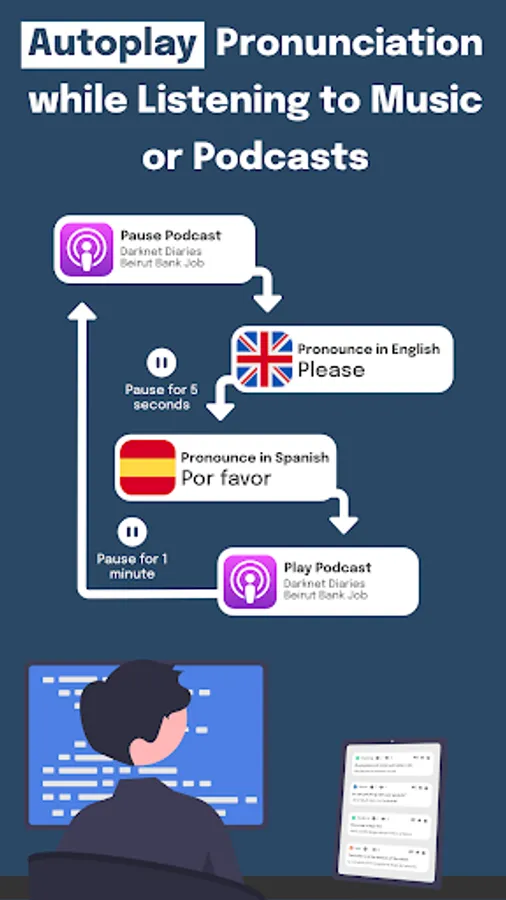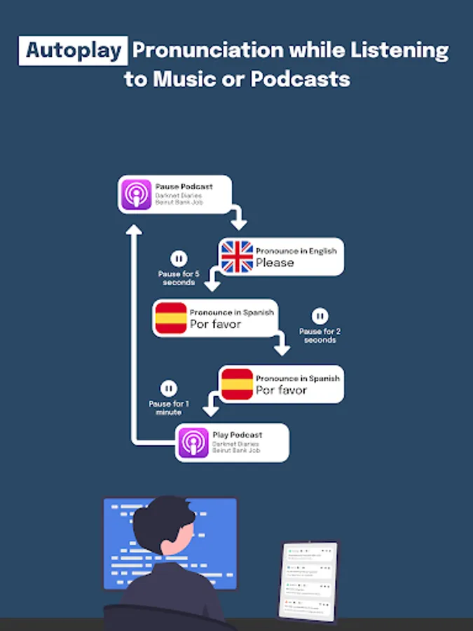 Flashcard autoplay and auto-pronounce loops over your flashcards for times when you cannot use your hands