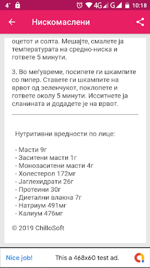 From a user aspect, you get a free application with hundreds of healthy eating recipes divided into categories, a small application (not taking up space on the phone, the size is about 3 megabytes, even less than one image from a cell), the ability to add recipes to your list your favorite recipes, share recipes or application with your friends, search for recipes by name, ingredient ...
