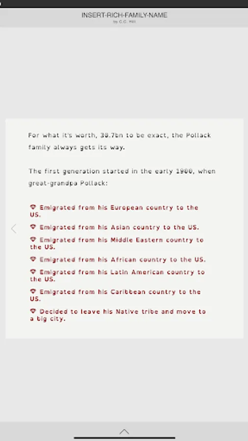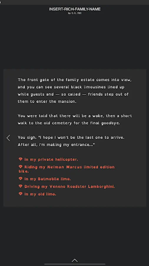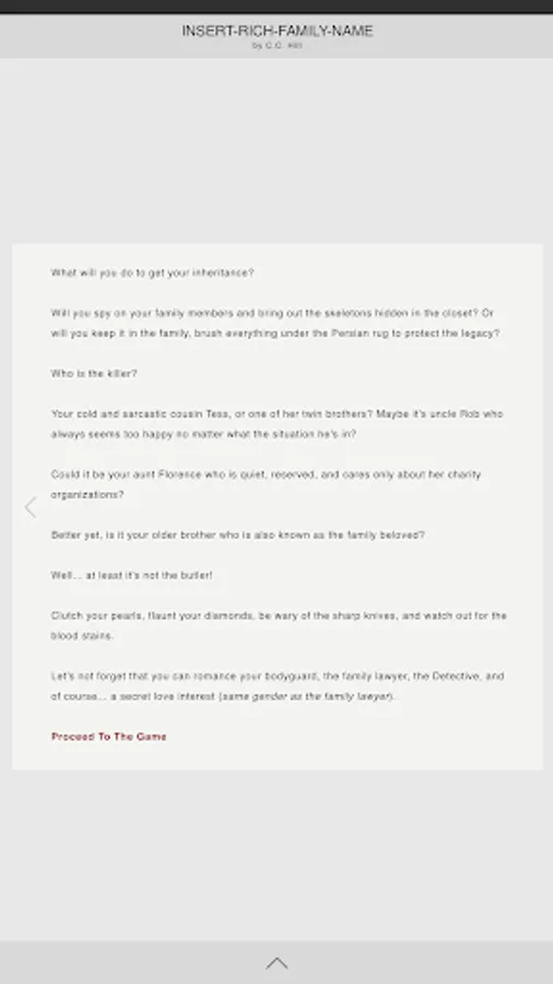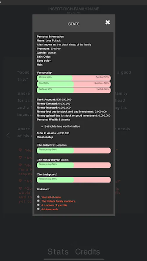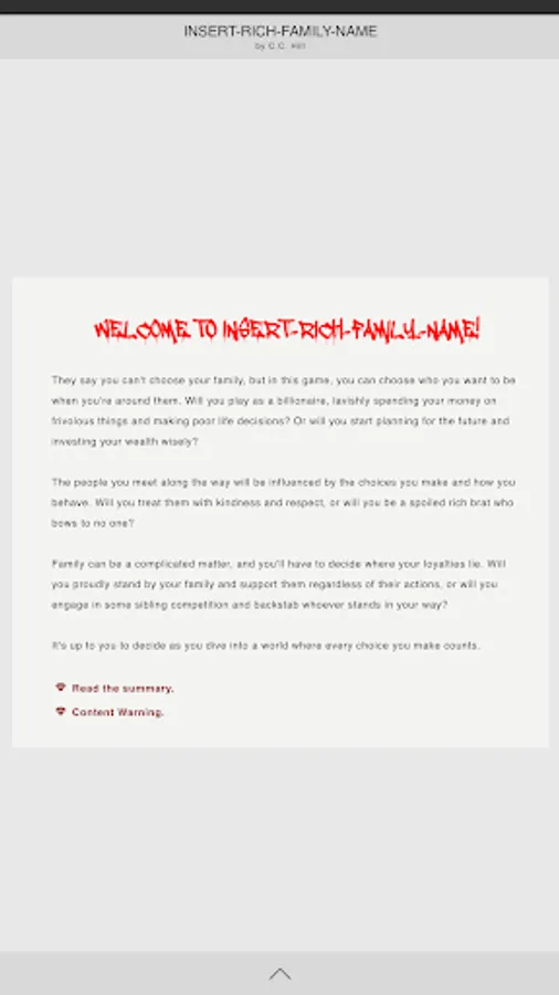 Insert-Rich-Family-Name, is an interactive mystery novel that lets you live the life of a billionaire and decide your own fate. With captivating storylines, unique characters, and multiple paths to take, this choose your own adventure game will have you hooked from the first chapter.