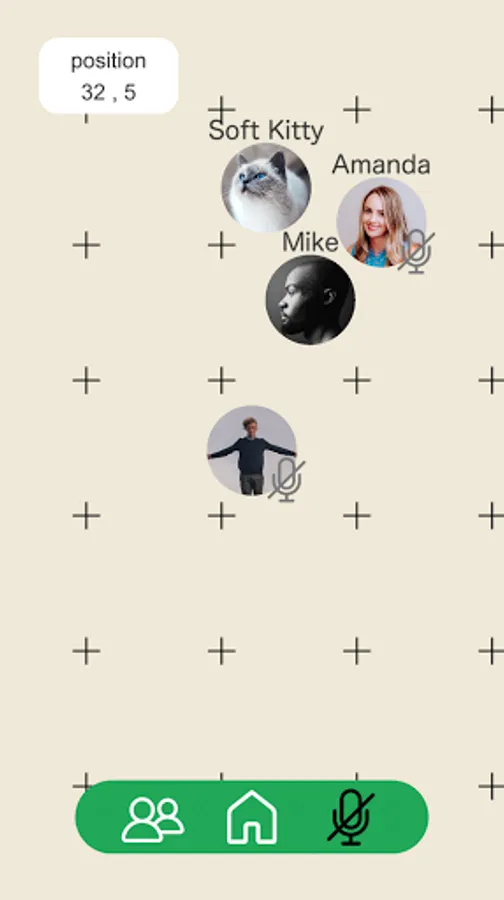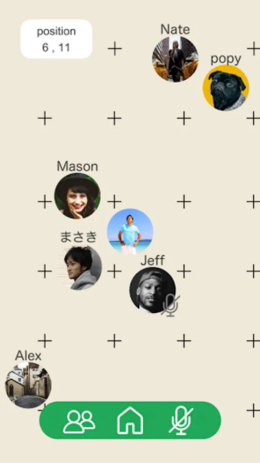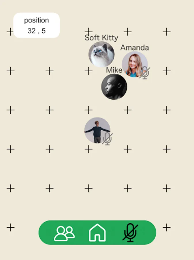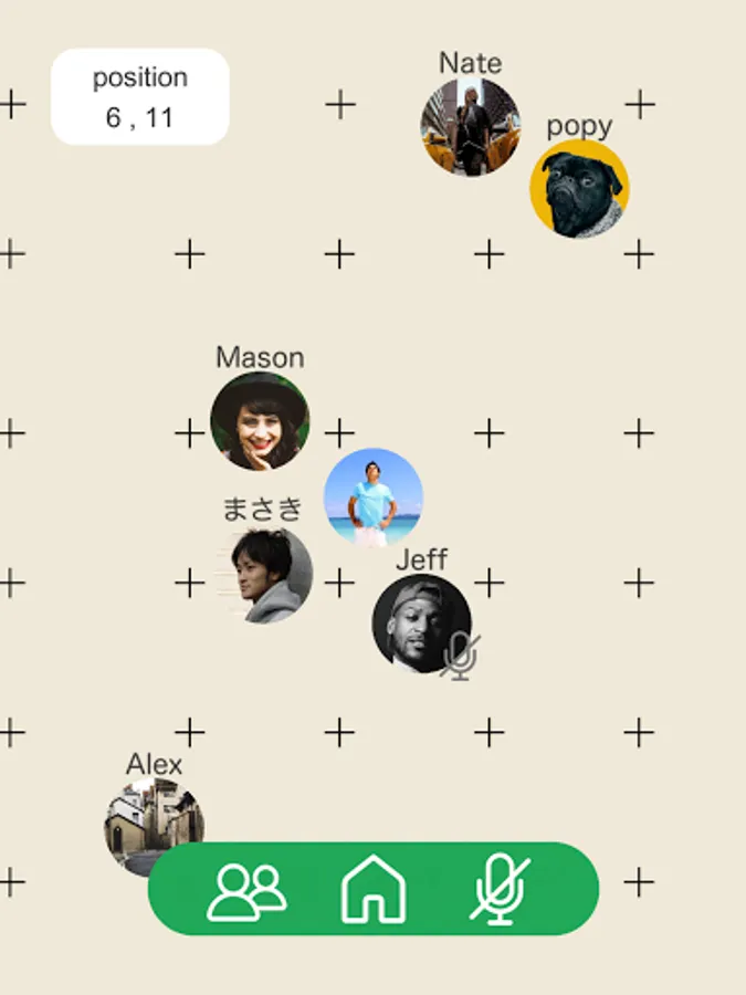 ChillTalk has all users in one room. You can move freely in the room by operating your own icon. Also, since the volume changes depending on the distance from other users, you can freely participate in the conversation you are interested in.