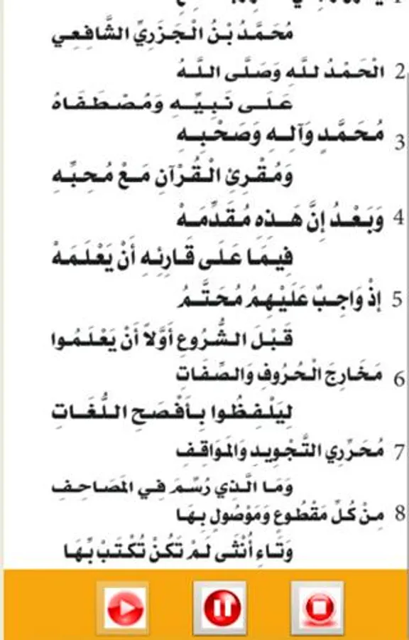 Matan Jazari is a matan that discusses about the science of Tajweed with a total of 17 chapters and 109 stanzas, this application consists of several facilities including