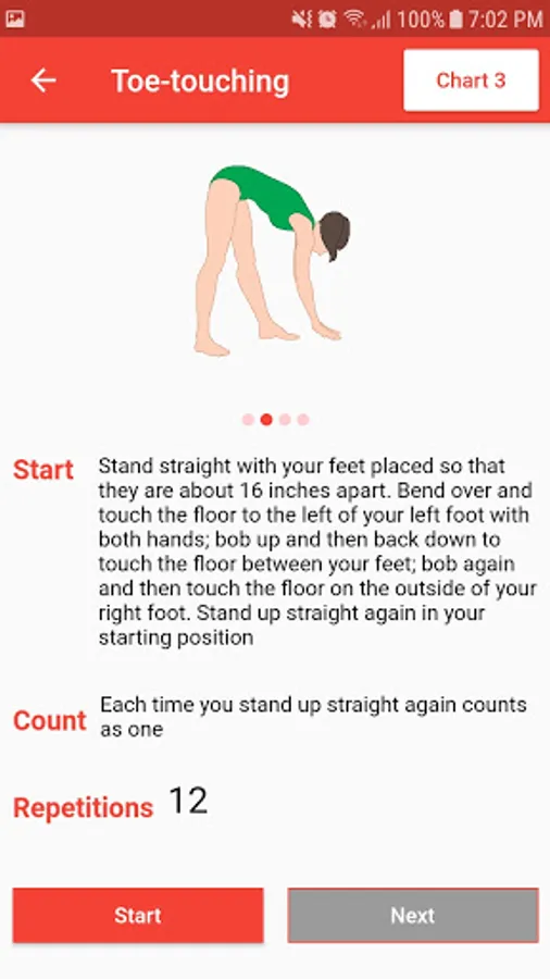 The XBX program consists of four charts of 10 exercises arranged in progressive order of difficulty. As your fitness improves, you perform more repetitions and then move on to a more difficult chart. The 10 exercises are completed in about 12 minutes.