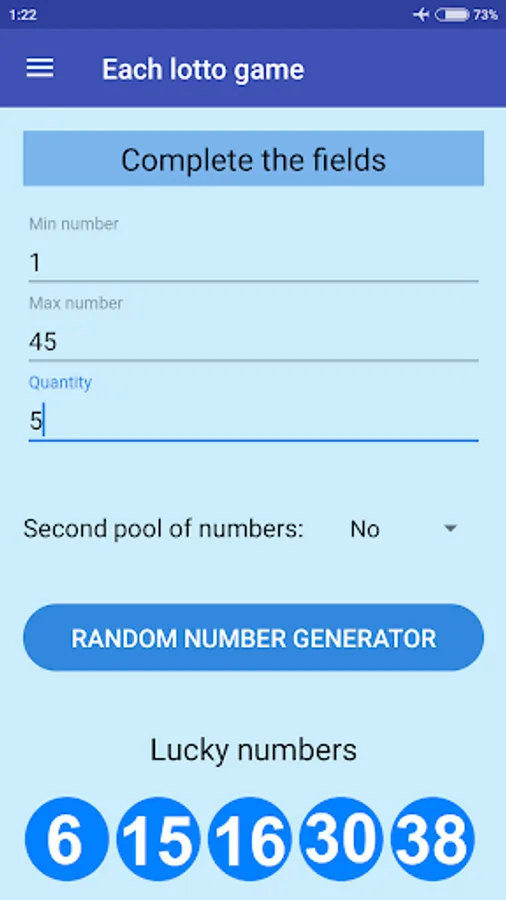 The application is made to help you pick random numbers but does not encourage to play the lottery or any kind of gamble.