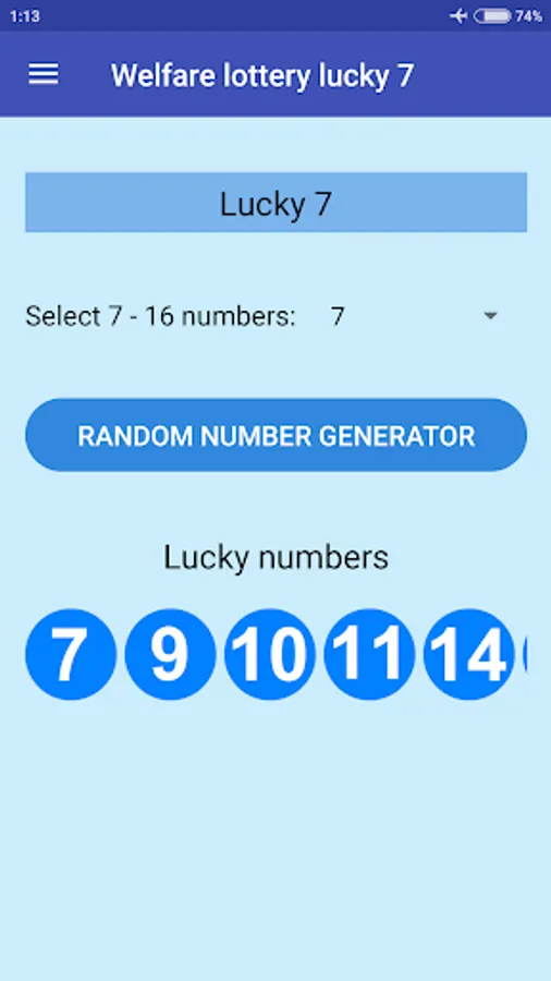 With this free application you can pick random numbers for the games Welfare lottery, Welfare lottery Lucky 7, 3D lottery, Happy 8, P5, P3, Super lotto, Sports lottery lucky 7, Lotto 5 out of 22, Lotto 7 out of 31 and each lotto game.