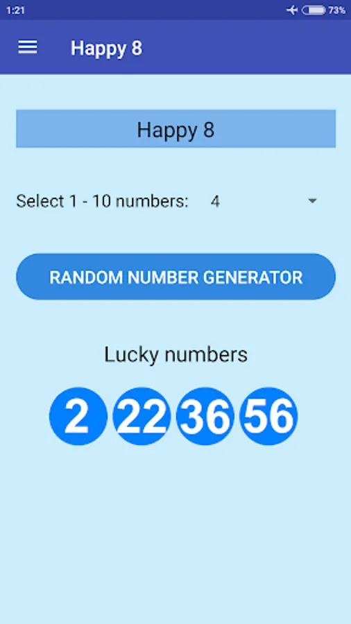 该应用程序用于帮助您选择随机数字,但不鼓励玩彩票或任何类型的赌博。