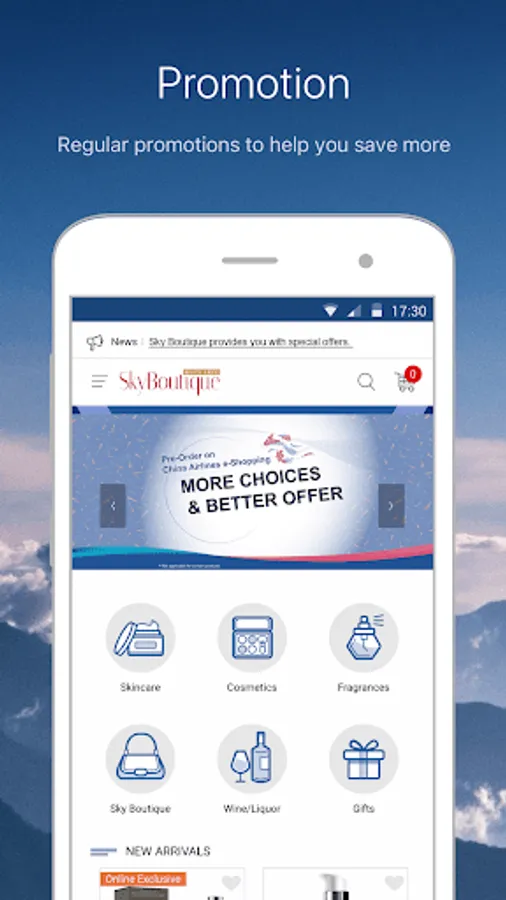 The all-new [華航Sky Boutique] provides you with special offers. Receive further discounts on duty-free products for best value!