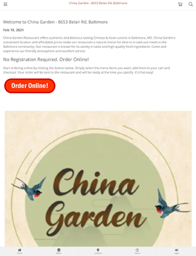 Online ordering for China Garden Restaurant in Baltimore, MD