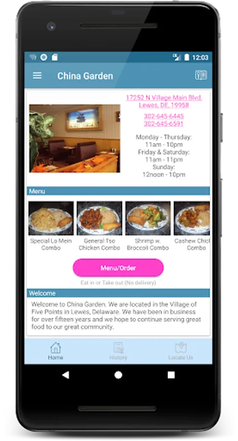 Order Chinese food quickly and securely from your phone. Place an order in the app and food will be ready for pick up in 10-15 minutes.