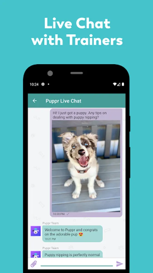 • Live chat with our team of world-class trainers to get your training questions answered (requires Puppr Premium subscription)