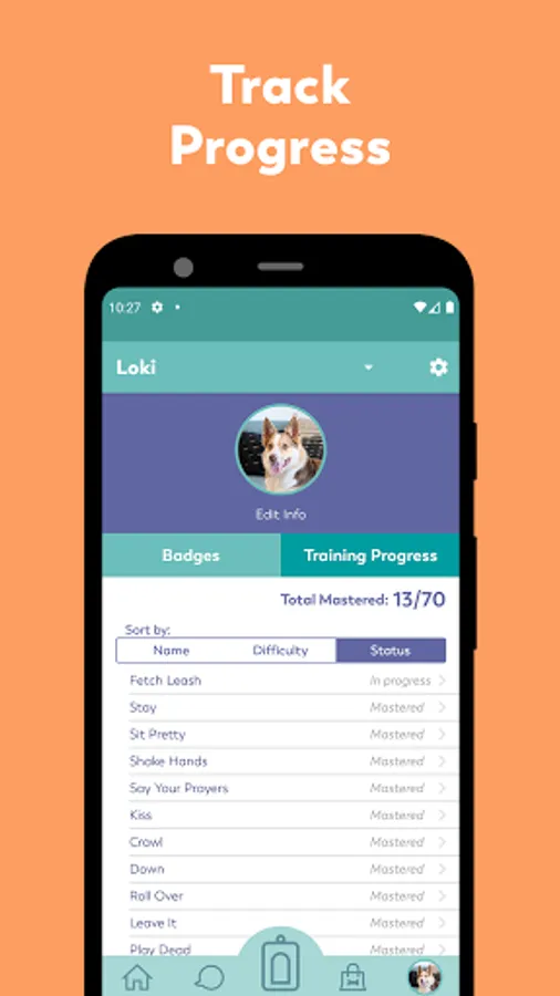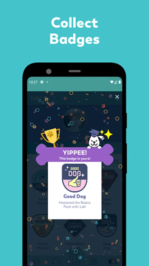 • Collect badges as you train and master new tricks