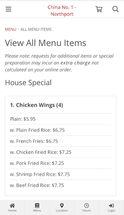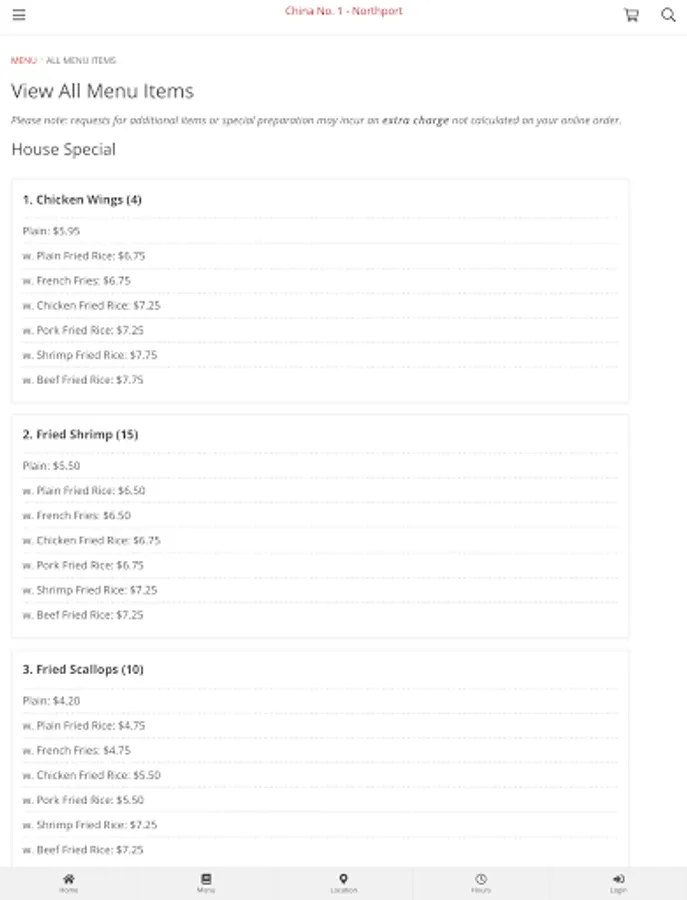 CHINESE MENU ONLINE