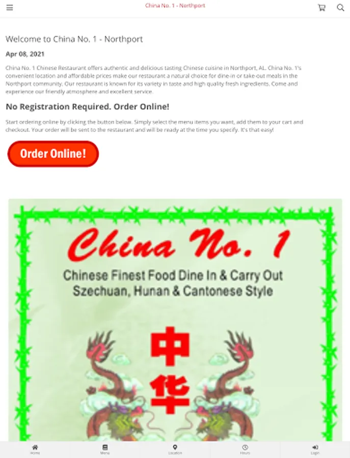 Online ordering for China No. 1 Restaurant in Northport, AL