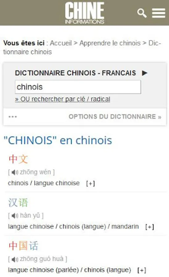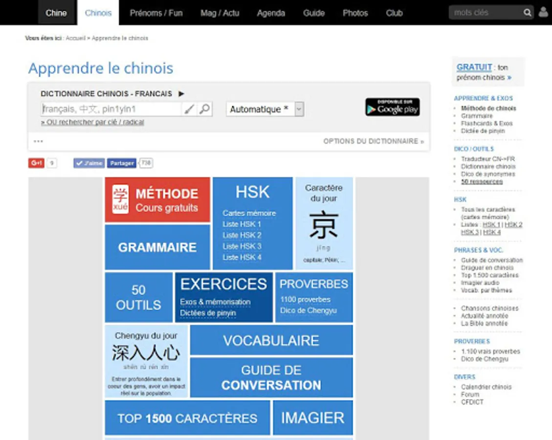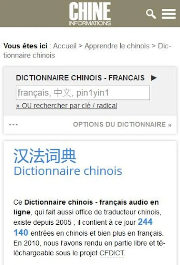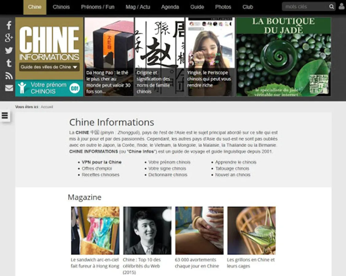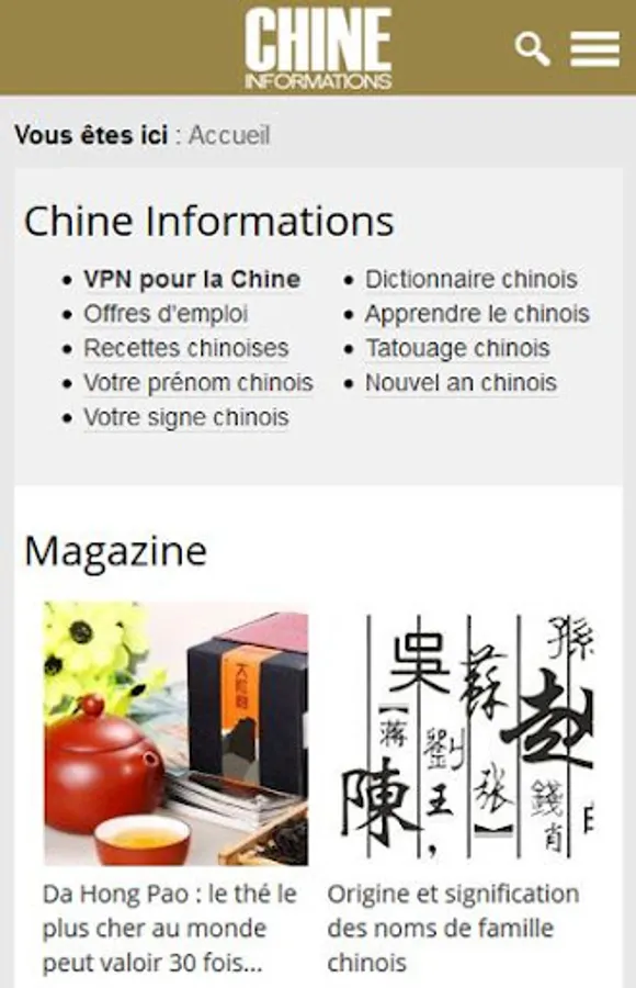 Consult all site smartphone or tablet directly with a single click. Ideal for reading real-time news about China or improve the Mandarin Chinese through the dedicated space that contains among other things a Chinese dictionary, a language audio method, sheets of grammar and vocabulary or exercises.