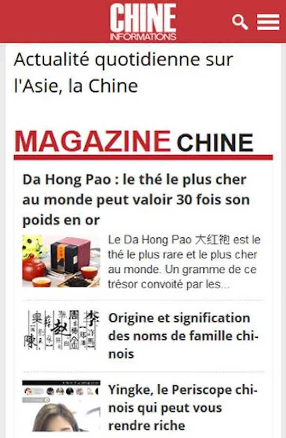 New official and free application of China Information ( https://chine.in ) providing news and information about China and the rest of Asia South East.