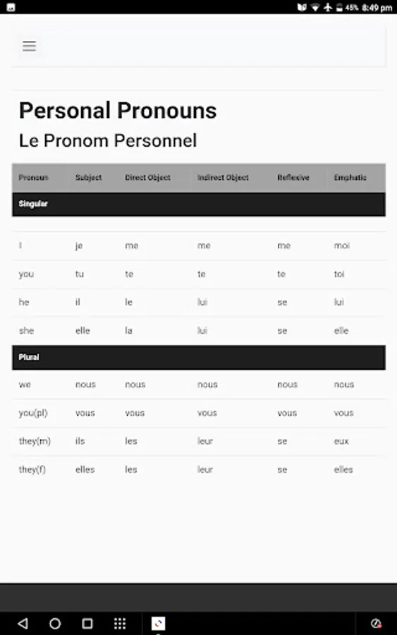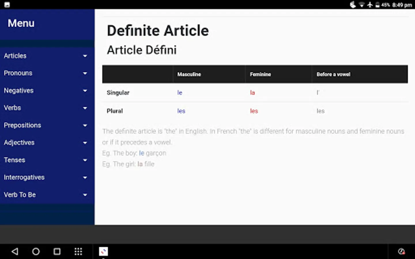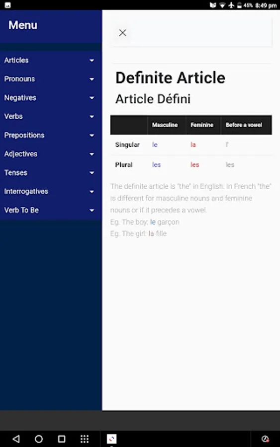 French Grammar Screenshots