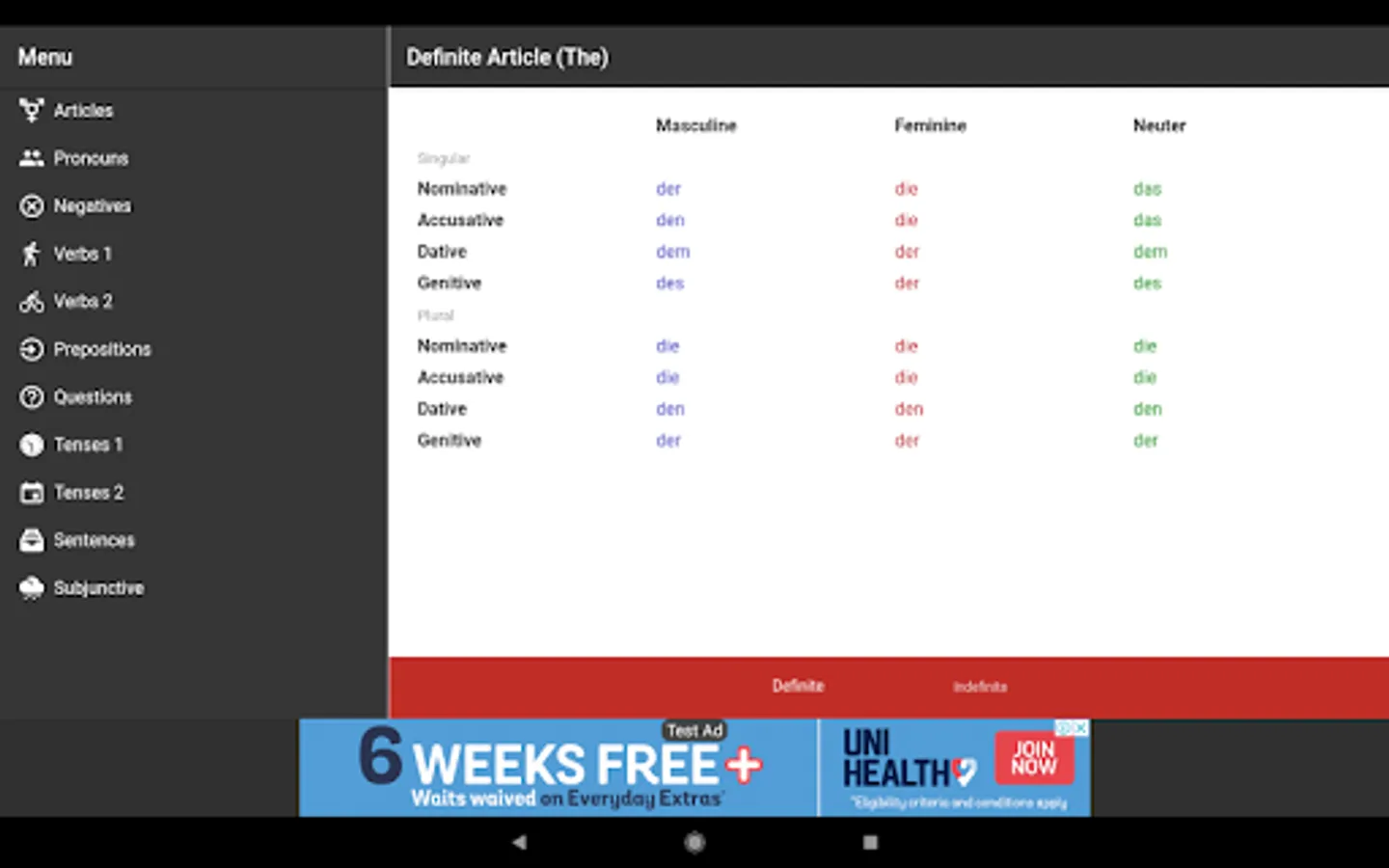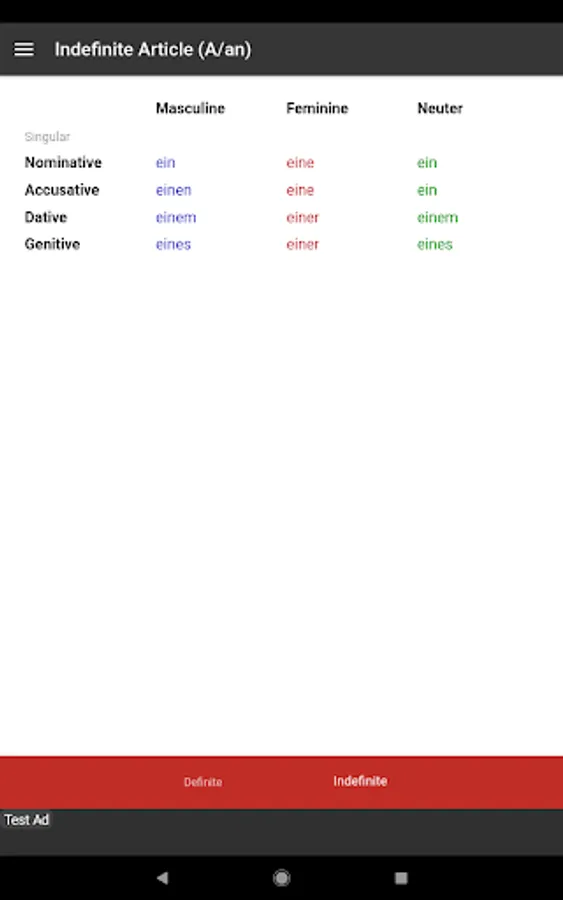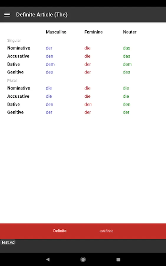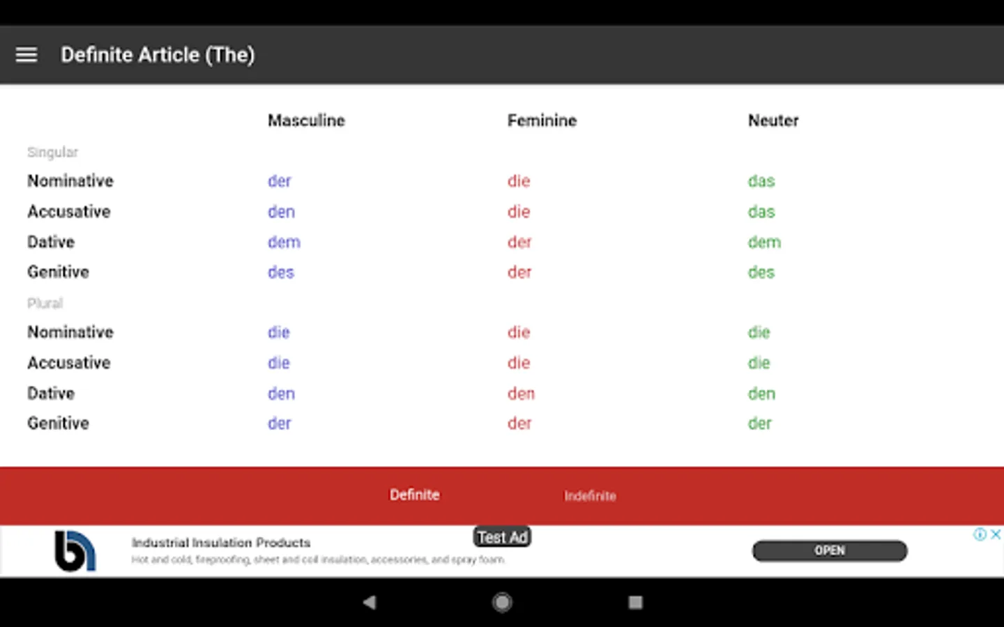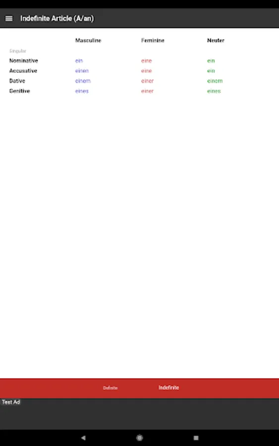 This app is also useful in conjunction with other study materials. Having the tables open on your phone or android device so that you don't have to continually flick back and forth through grammar books while doing grammar exercises. It is also convenient for revision and study in short periods of time in almost any location.