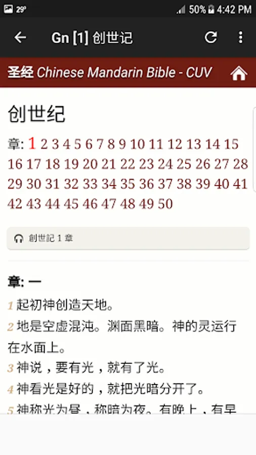 圣经 - The best android application about Mandarin Chinese in Audio Bible mp3 and free e-book Bible to read. With this app you can read and hear the words of God at the same time in Chinese Mandarin language. If you love to read, just feel free to read but If your schedule is very busy and you basically do not own a single minute to sit and read on Bible then just play the audio you want and listen! This Mandarin Chinese Bible app comes complete with text and audio Bible, all chapters of New and Old Testament. This app is perfect for Chinese people around the world who wants to read and hear the Bible in Chinese Mandarin language. With this app you can take Bible with you wherever you go. Free for all who loves God. Very easy and friendly for newbies. Try it now for FREE!