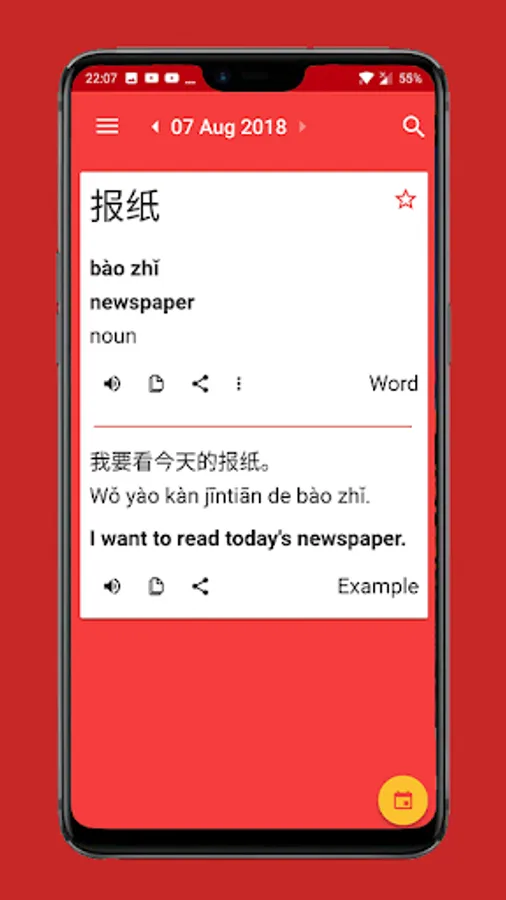 Learn a word a day from Chinese! This app will allows you to set a notification time to get a reminder for today's word. we have you covered as we update a new word daily at 5:30 AM (GMT).