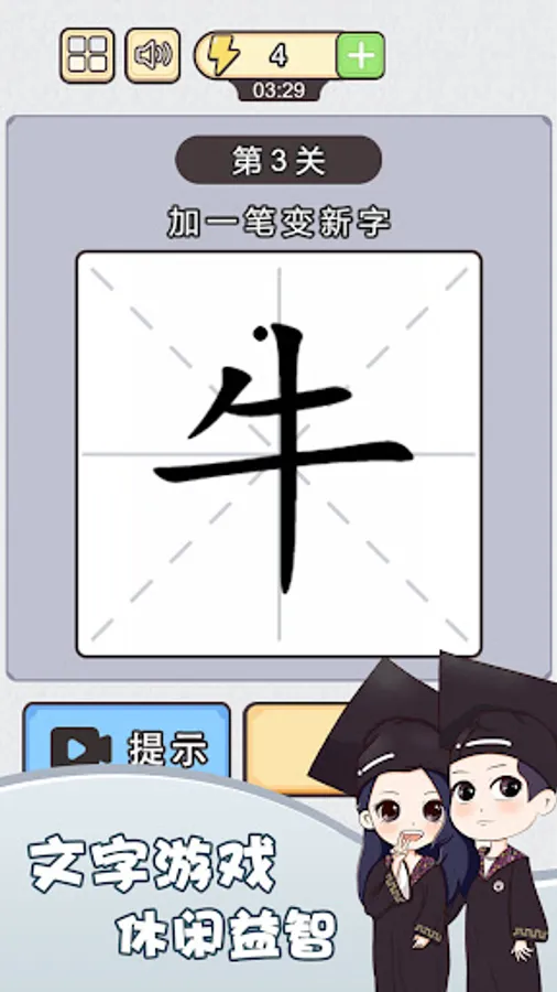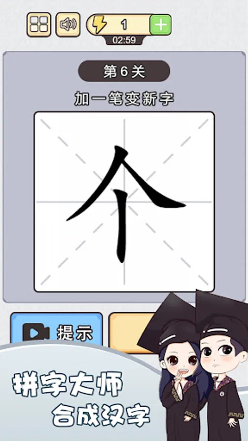 Chinese character plus one stroke is a casual app that allows you to feel the charm of Chinese characters. Brand-new Chinese characters, simple guessing Chinese characters, puzzle gameplay, mainly to test the player's image thinking ability, and need to turn their brains.