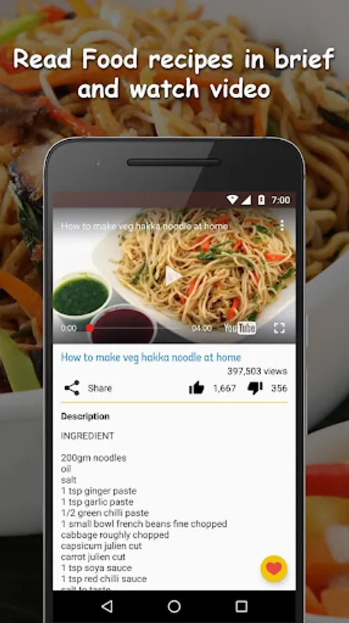 App provides solutions as per your demand. You can find different delicious Veg & Non-Veg Chinese Food Recipes in different languages. Its batter to watch food recipes videos in full screen rather than read recipes. You can find Chinese food recipe like Schezwan Rice, Veg Noodles, Chinese Chopsuey, Dry manchurian, Gravy Manchurian, Chinese Bhel, Vegitable Hakka Noodles, Veg Frankie, Chinese Pakoda, Chicken Manchurian, Chicken Noodles, Chicken Schezwan Fried Rice, Chinese Sizzler and many more..