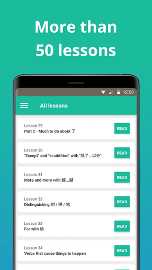 You'll find clear and easy to understand lessons illustrated with plenty of examples. There are more than 100 lessons available (and more coming!) from a beginner to an advanced level to learn Chinese grammar offline. The lessons are all in simplified Chinese and are not in traditional.