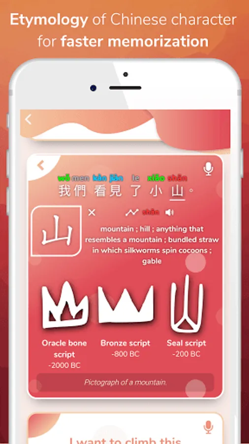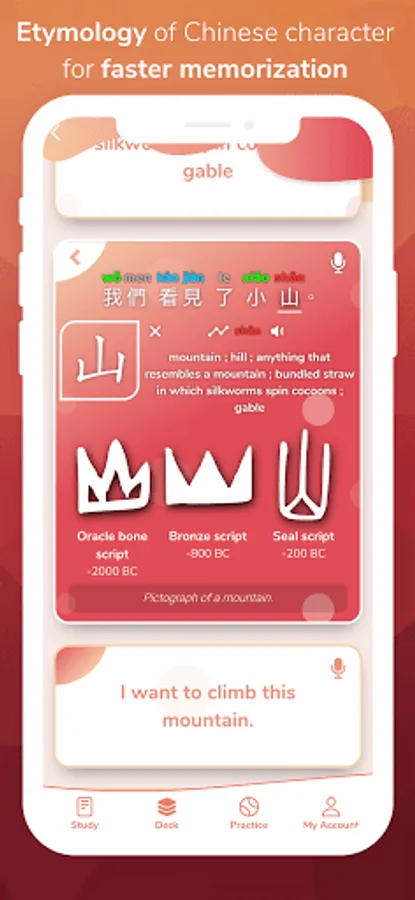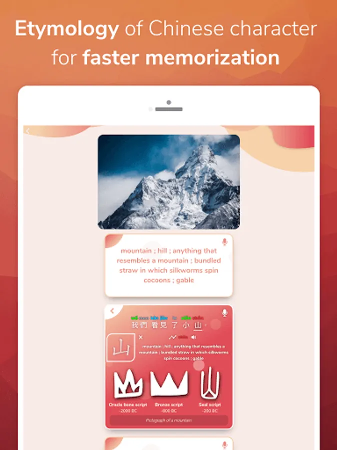 100% free and ad-free, Chinese Peach helps you learn Chinese Mandarin fast with high efficiency using tools such as live speech recognition, Chinese tones comparison, native speaker audio recording, high-precision hanzi drawing, etymology of the Chinese characters and many others.