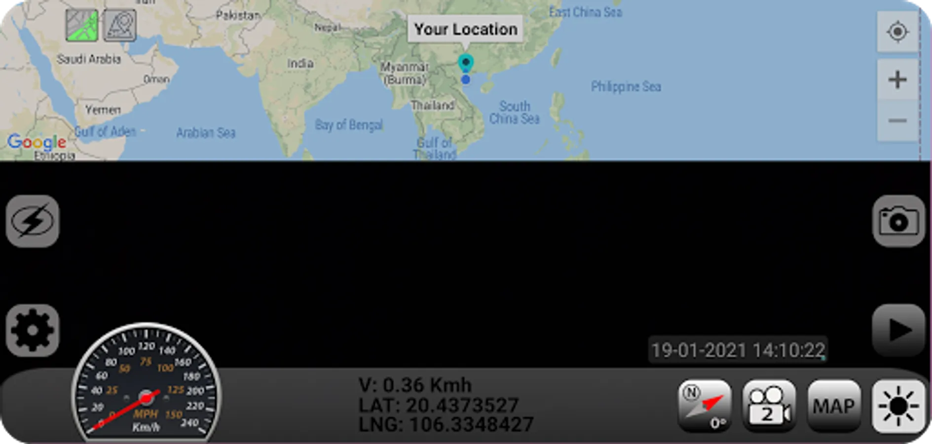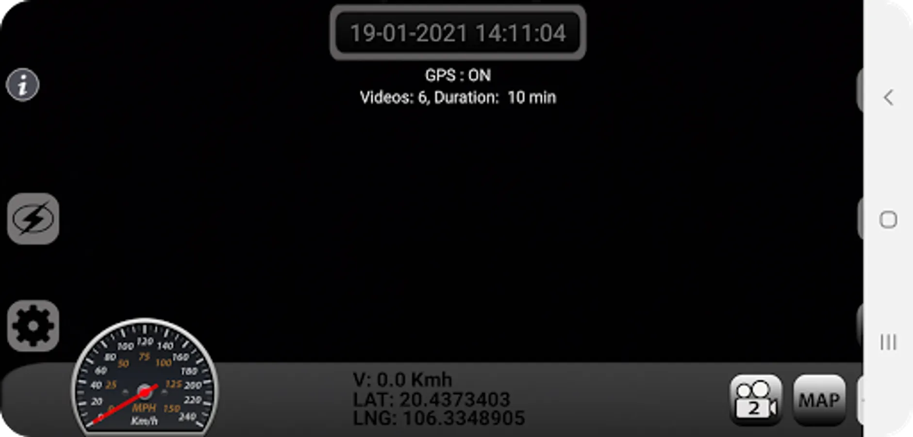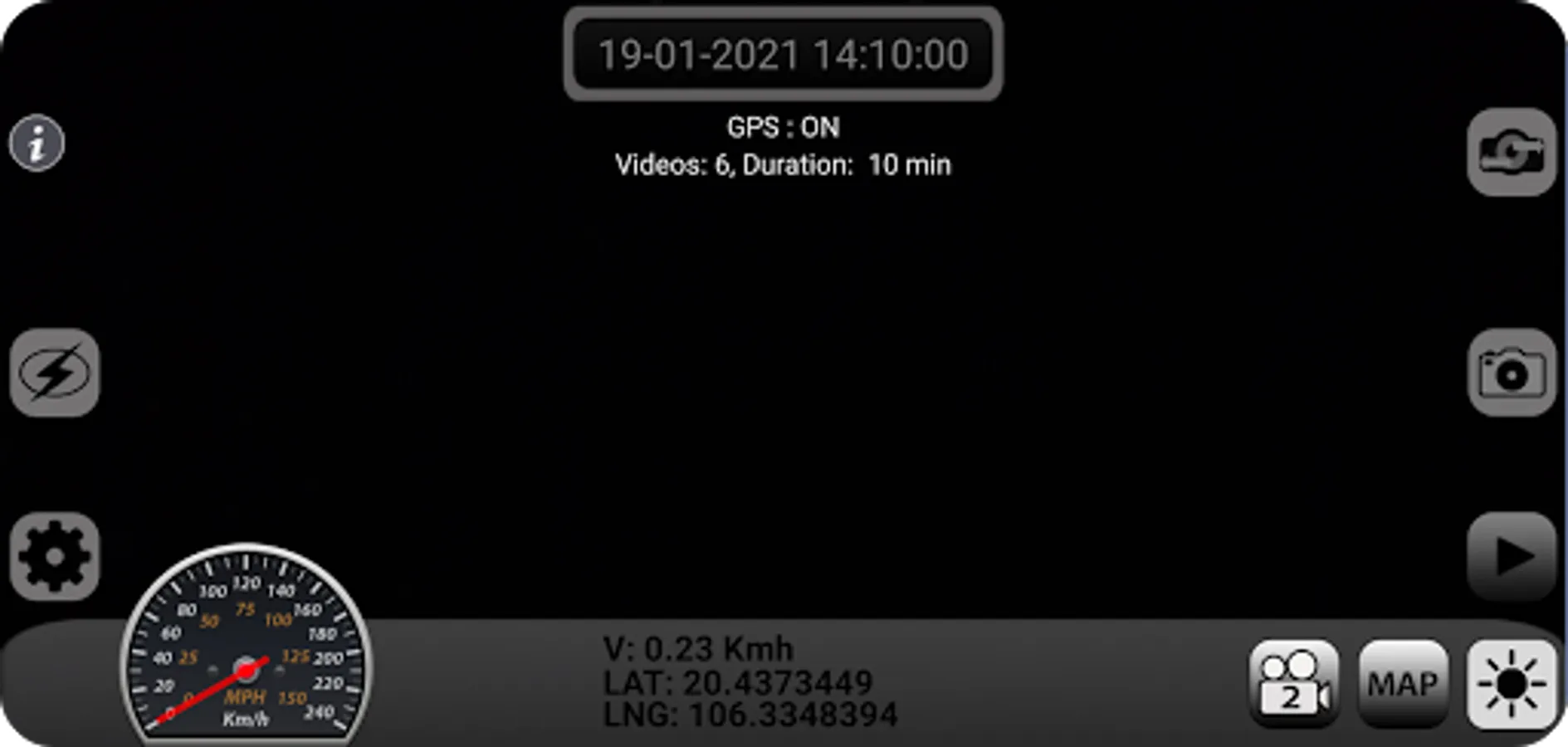 * All viewable components like camera view, buttons, location data and other widget you see on the screen are recorded in video file. So don't need to use separate SQL database to store location data