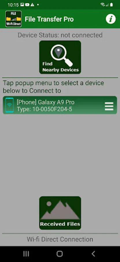 File Transfer Pro (wifi-direct) app is used to transfer files between 2 android devices using WiFi-Direct platform