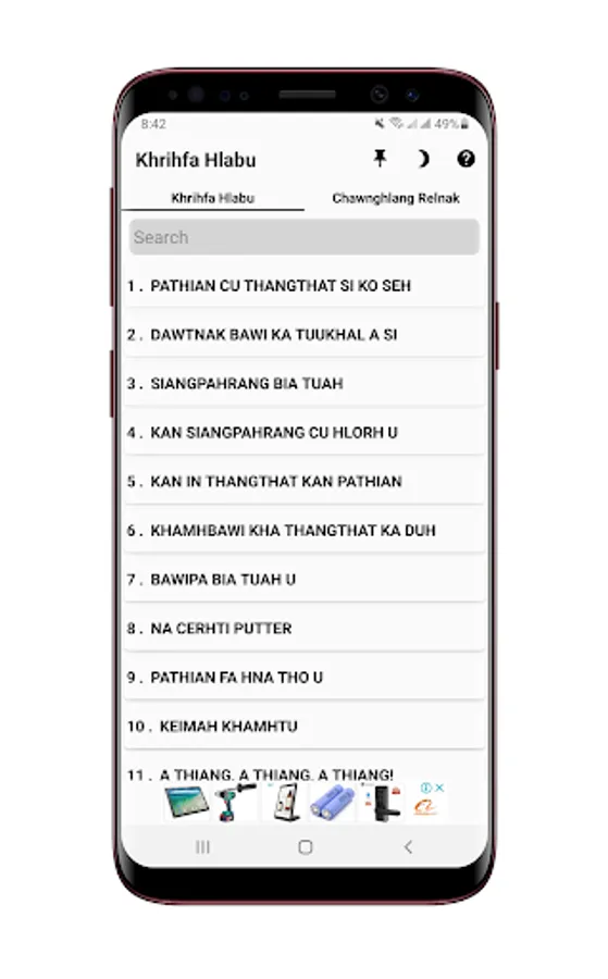 Laimi tampi nih kan Phone ah hman kan duh cio mi Khrihfa Hlabu App cu tling deuh tein ka van tuah than cang , a tu Khrihfa Hlabu ah Piano le Solfa telh chih a si cang . Pumpak uar bik mi Hla zong fim khawh a si cang .kan hawi le zong nih an hman khawh cio nak lai share in ka bawm ve uh tiah kan sawm hna.