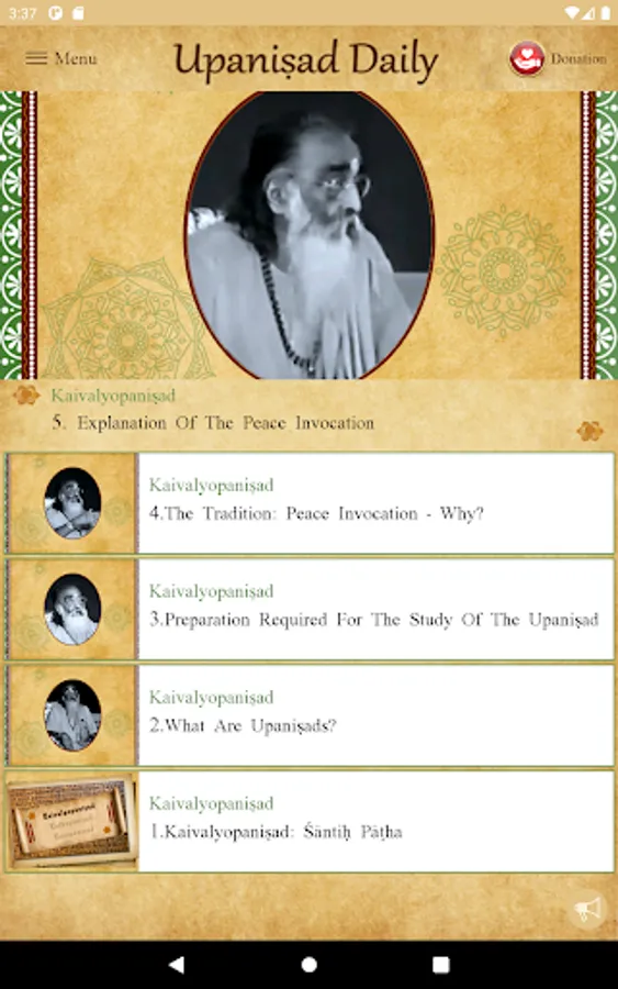 The Upanisad Daily App will send you a push notification of each day’s message. You can also view the message for the day as the first video clip on the App’s home page. This page will give you the sequential access to all the video clips that build on each other according to the Upanisad.